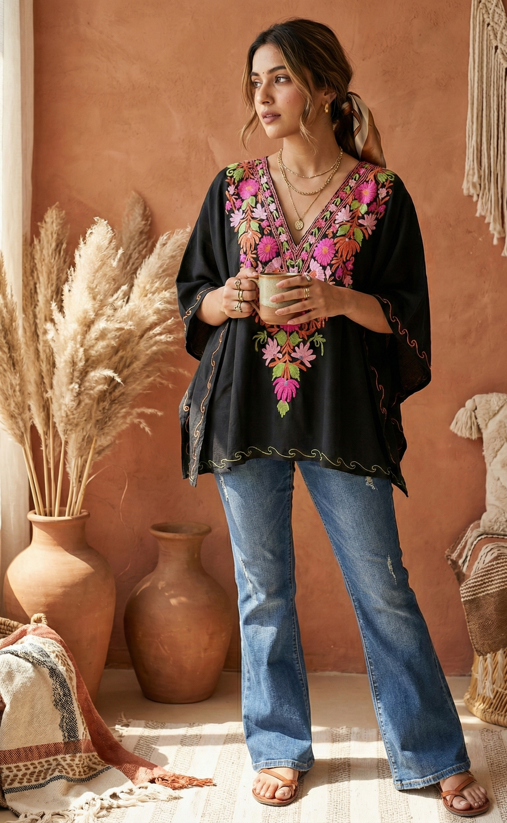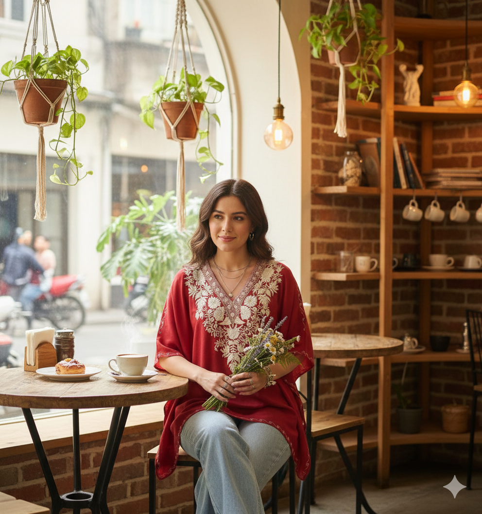 Each Kaftan is intricately embroidered with a focus on detail and design, ensuring that every piece captures the region's beauty.